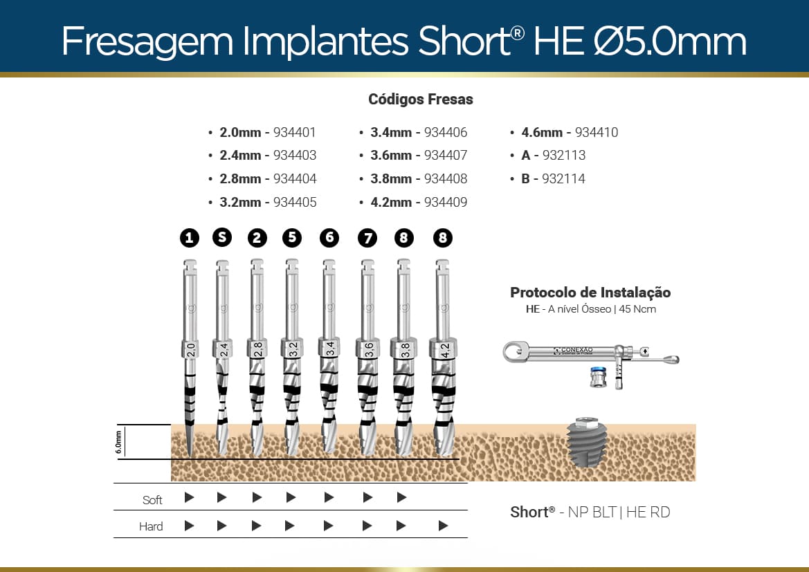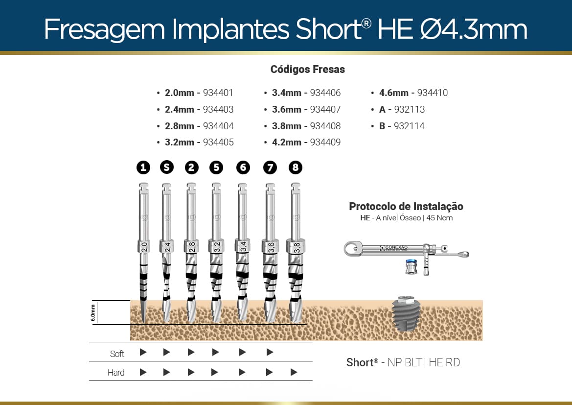 Ideal para casos clínicos com pouco osso, sua plataforma protética HE RD que garante estabilidade e precisão.